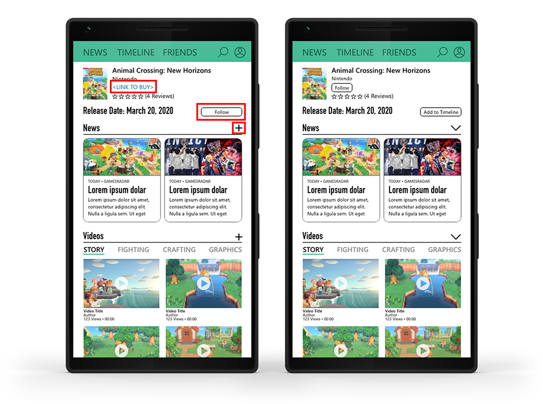 In the usability testings, I asked users to create an account, search for the new Animal Crossing: New Horizons game, look for a video that show cases “Story”, and add a game release date to their timeline.