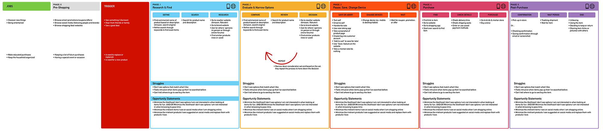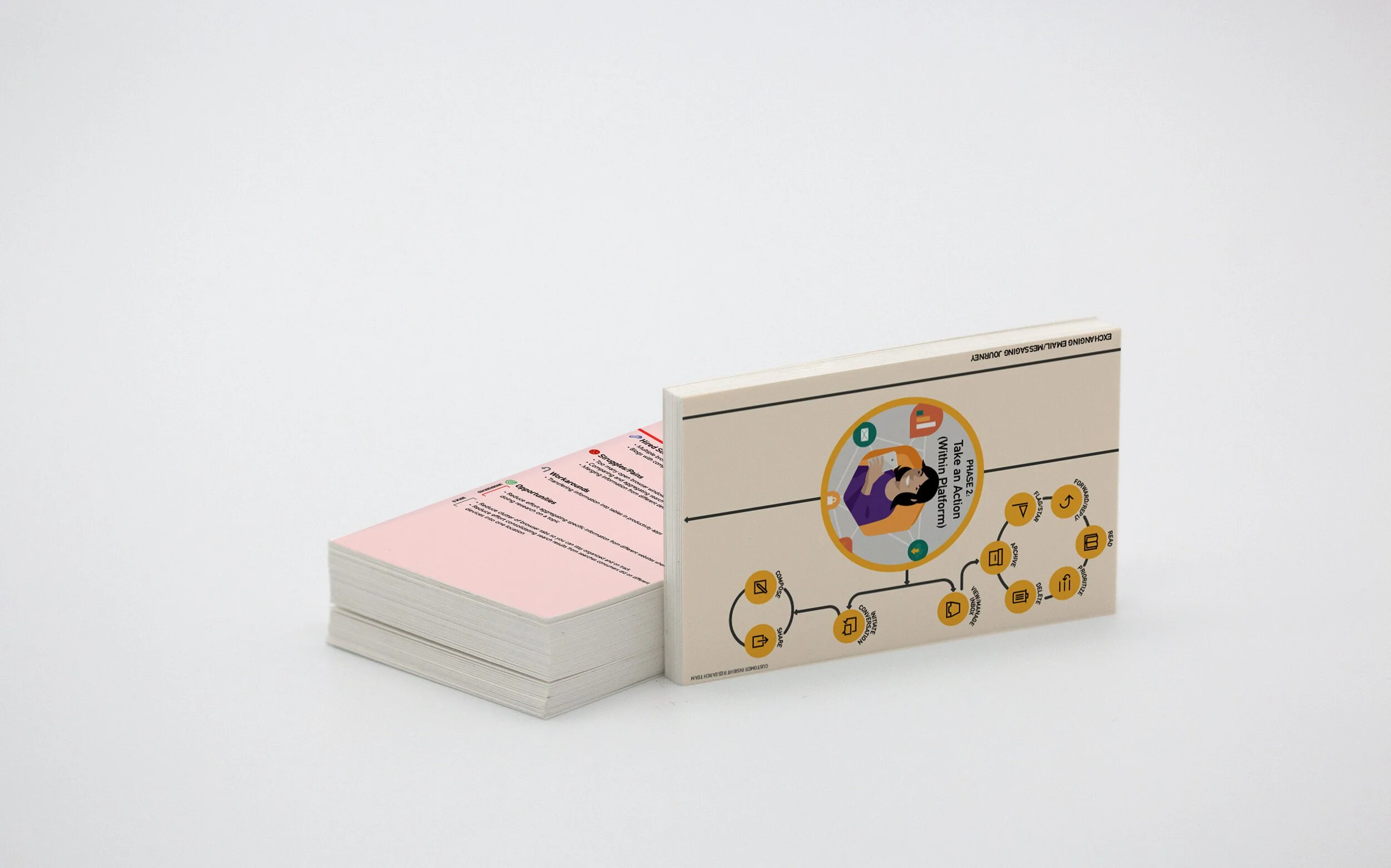 With these changes, I created the Customer Journey Cards. These were physical cards that displayed the illustrated phases on one side and the in-depth research on the back.